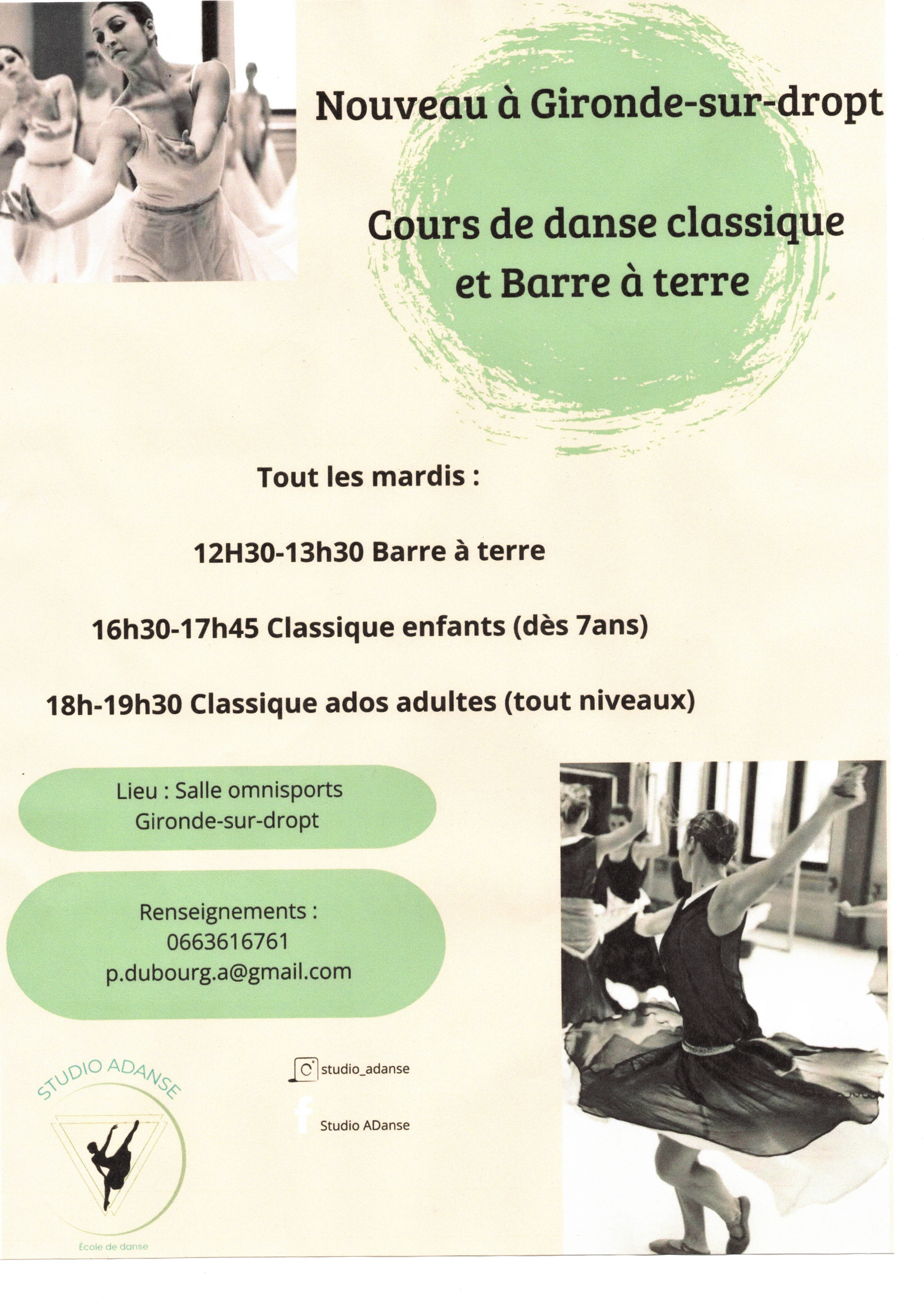 Des cours de danse classique pour enfant et ados adultes ainsi que des cours de barre à terre s’ouvrent.