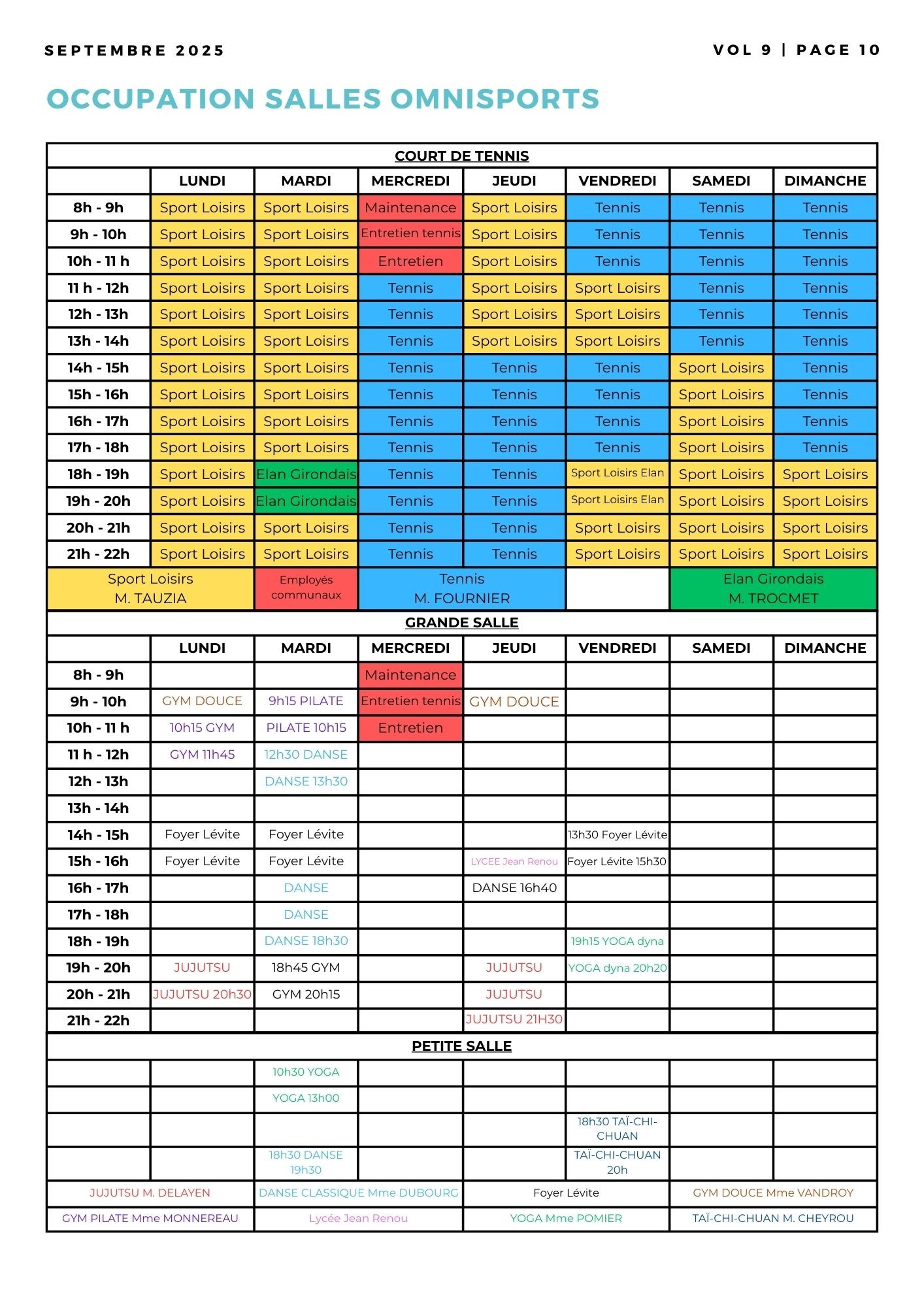 Planning occupation salles pôle raquettes