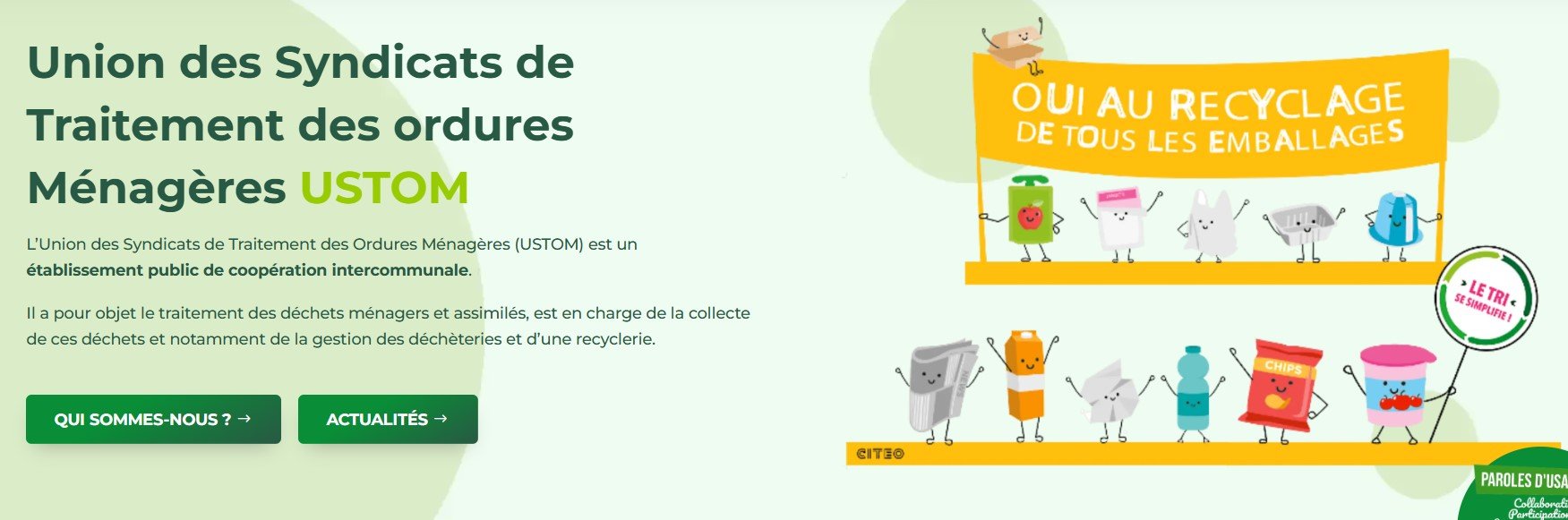 L’Union des Syndicats de Traitement des Ordures Ménagères (USTOM) est un établissement public de coopération intercommunale.