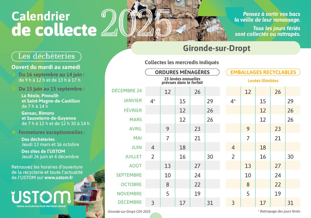 Les collectes ont lieu les mardis et mercredis sur la commune.